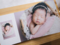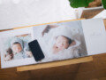 「最初のお写真はやっぱり特別に残したい」そんな方に自信を持ってオススメします。表紙と裏表紙が輝くようなアクリルプレートで仕上げてあり、ページを開くごとに赤ちゃんの寝息が聞こえてきそうな臨場感たっぷりのアルバムです。最初のページには白黒の透かしにお名前と生まれた時の体重や身長などのバースデータを。生まれた時の感動をいつまでも残しておける1冊です。