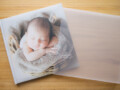 表紙と裏表紙がアクリルプレートでできた高級感あふれるアルバムです。お名前、生まれた時の体重や身長などのバースデータをモノクロ透かしのページに入れてドラマチックに。手に取りやすいサイズで、こだわりのある方にとても人気のある一生もののアルバムです。
