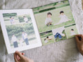 コロンとした正方形がかわいい絵本のような仕上がりです。そのまま飾ってもとっても可愛く、手に取りやすいアルバムです。表紙にクッションが入っておりソフトな触り心地です。掲載できるお写真の数も多く、開くほどに楽しいストーリーのあるアルバムです。ニューボーンフォトでも人気のアルバムで、揃えても可愛いです。※レイアウトはお任せいただきます。